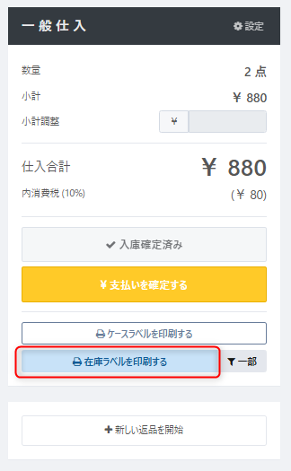 仕入詳細ケースの右下にある【新しい返品を開始】をクリックします。