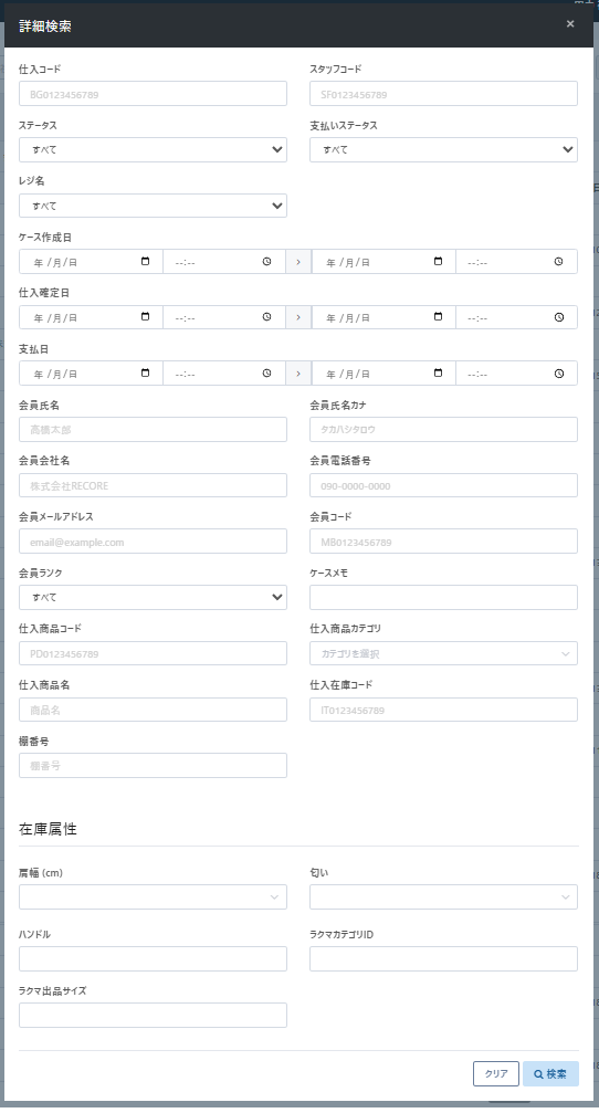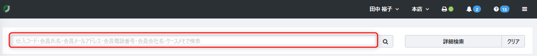 【仕入コード】【ケースメモ】【会員氏名】などから検索が可能です。