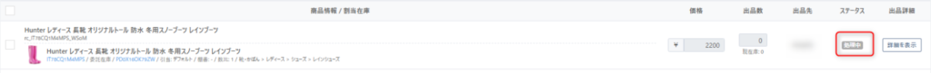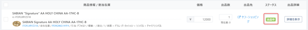 その後、出品が完了すると、ステータスが『出品中』に変わります。