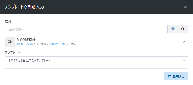 【設定>EC出品テンプレート】より設定したテンプレート名をクリックして選択