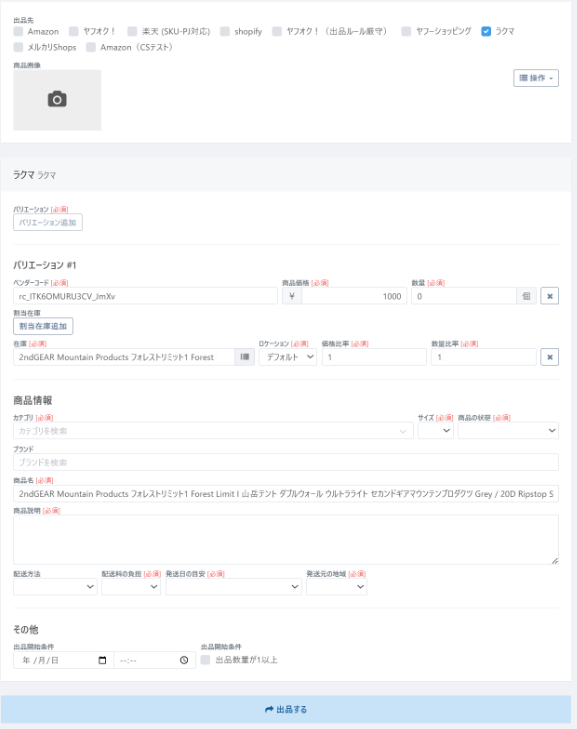 ※各ECモールにて当該在庫が出品されている状態の場合のみ、出品情報を更新できます。 ※前回の出品操作時の「商品番号」を変更することはできません。 ※出品情報を修正更新の処理を行う際、ステータスは『出品中』のまま変わりません。 ※なお、出品中の情報を楽天ラクマ側より変更された際にはReCOREに情報が反映されませんので、十分ご注意ください。