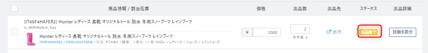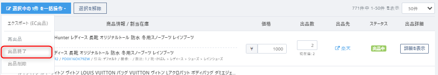 操作完了後、ステータスが【出品終了】になっていることを確認する