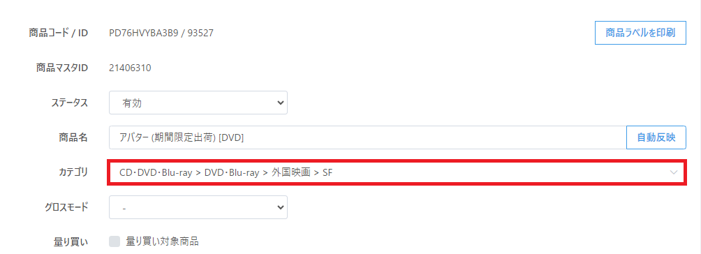 例えば、以下のような【CD・DVD・Blue-ray > DVD・Blue-ray > 外国映画 > SF】という商品カテゴリの商品を出品したとします。