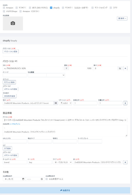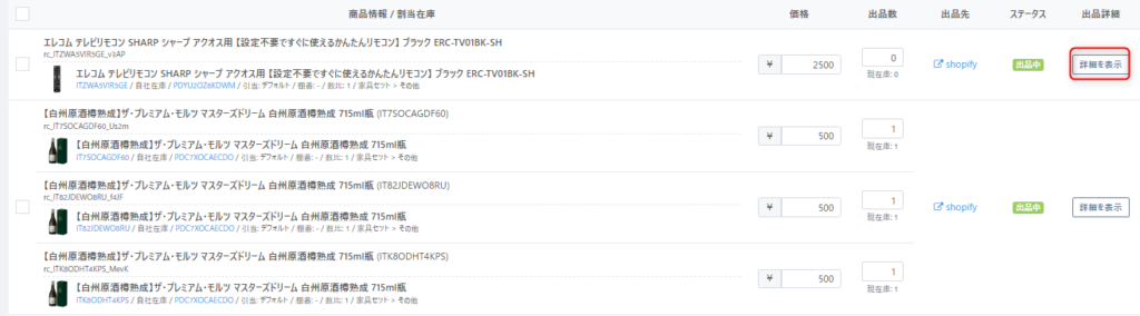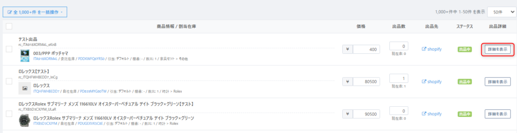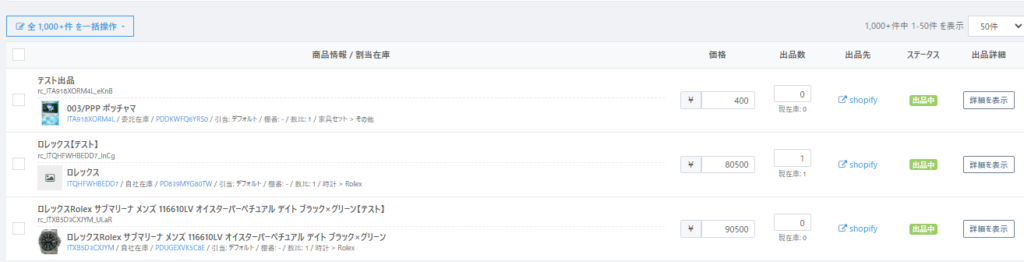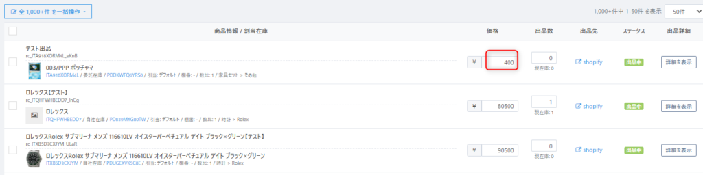 ReCOREからShopify出品操作後、出品中の出品情報を更新することが可能です。