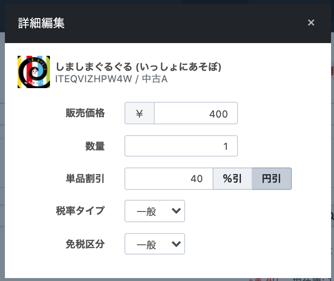 直接、販売価格を手打ちで編集することも可能です。(※その場合は、レシートに割引の記載がされませんのでご注意ください。)にて
