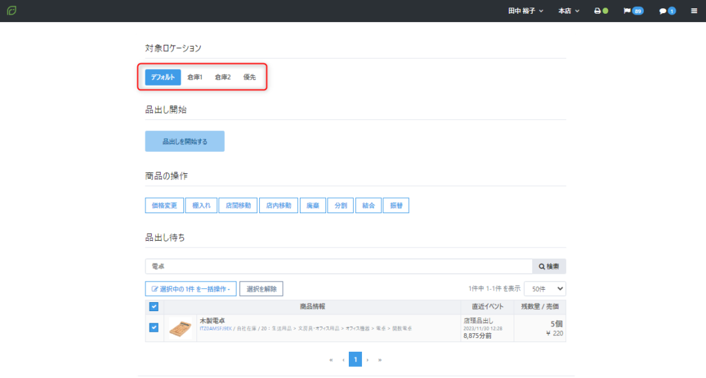 在庫の保管場所である店舗や全店舗から操作が可能です。