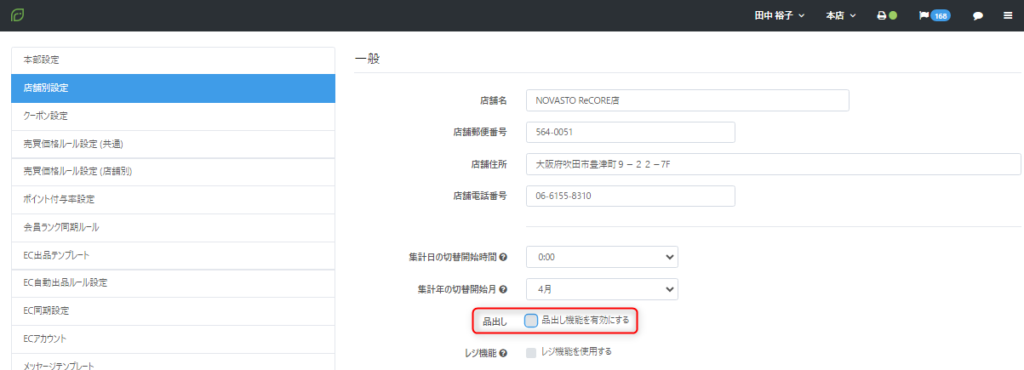品出し機能は、【店舗別設定】でオフにすることも可能です。