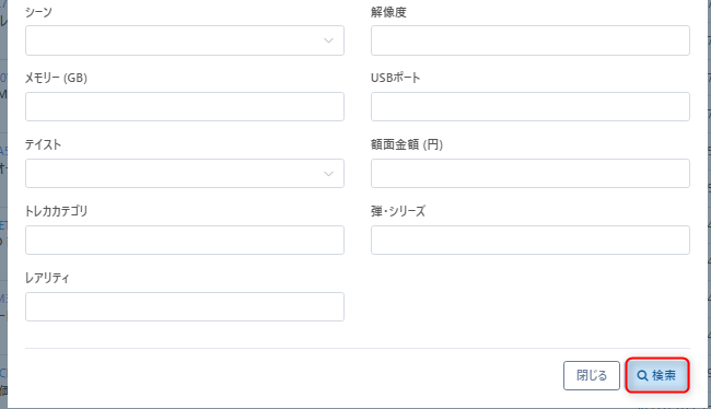絞り込みたい条件を該当項目に入力し、【検索】ボタンをクリック