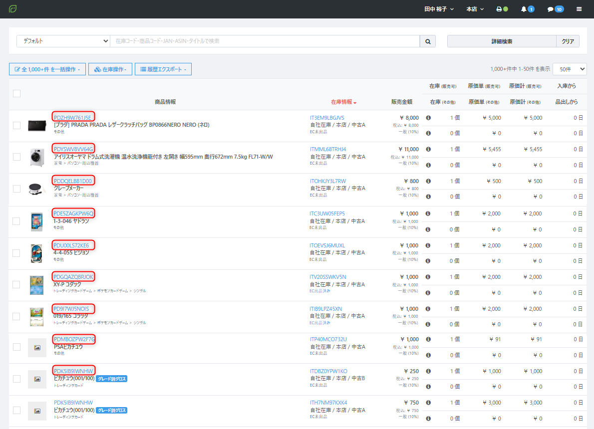 同一のカタログ(PDコード)であっても、買取ごとに在庫情報を1件ずつ作成・管理できます。