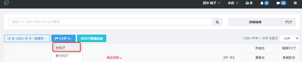 そのため、必ず変更前の現在のカタログデータをエクスポートしてバックアップとして保存のうえ、そのコピーを編集してインポートされることをおすすめします。