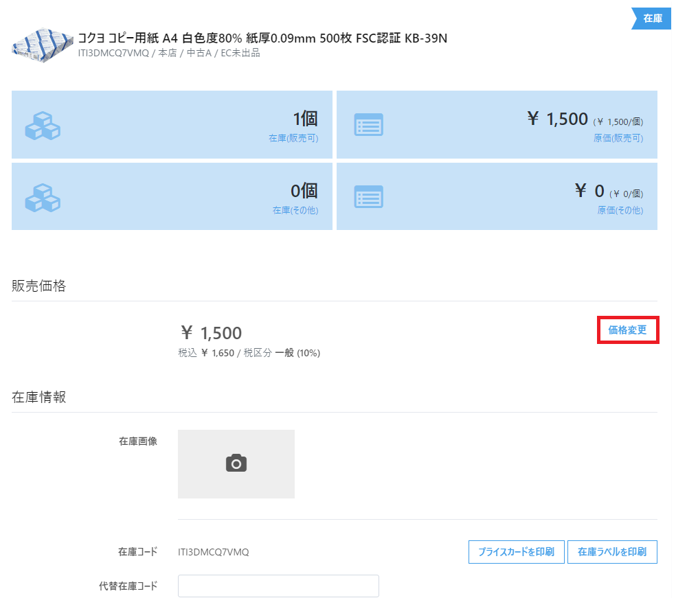 ・各在庫(ITコード)の詳細画面より【価格変更】