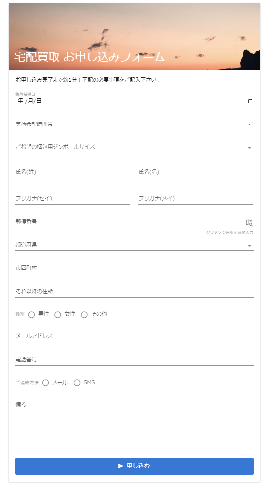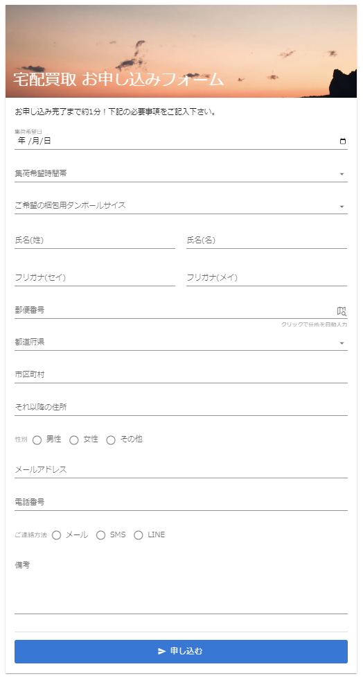 サンプルファイルはこちら↓ 宅配買取申込フォームサンプル_GoogleDrive