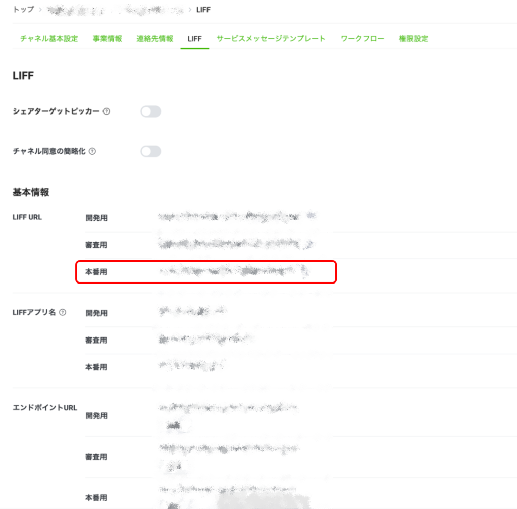 【LIFF URLの確認箇所】