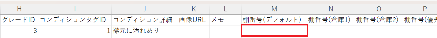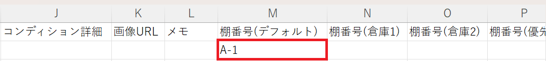 ①CSVファイル内の「棚番号」に更新したい棚番号を入力します。