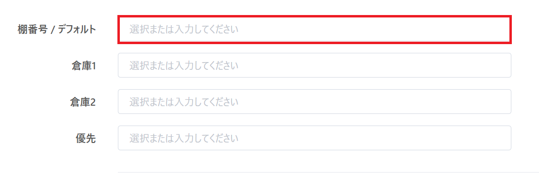 なお、棚番号の項目にカーソルを移動するとあらかじめ他在庫において登録されている棚番号が入力欄に表示されます。