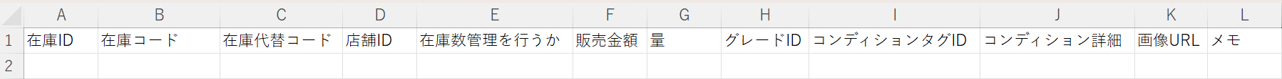 ④新規で作成した空白のExcelシートに③でコピーしたカラムを貼りつけ、インポートのフォーマットを作成