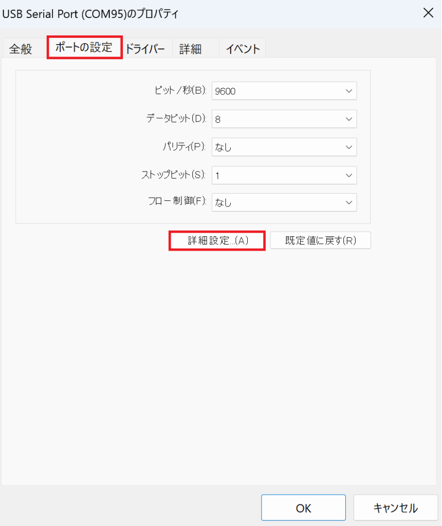 画像のように「USB Serial Port(COM95)」と表示されていれば、設定完了です。