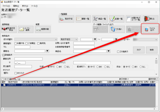 ・出荷履歴一覧で【出荷日】を指定
