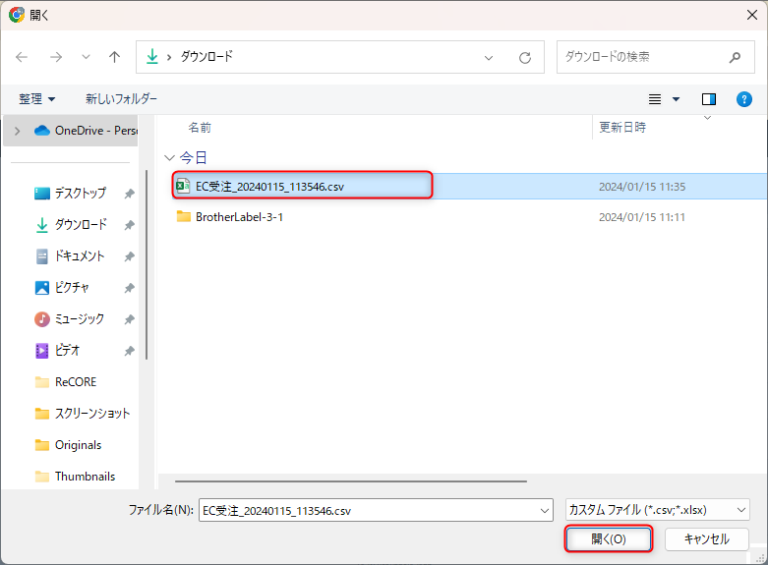 ・ 【開く】をクリック