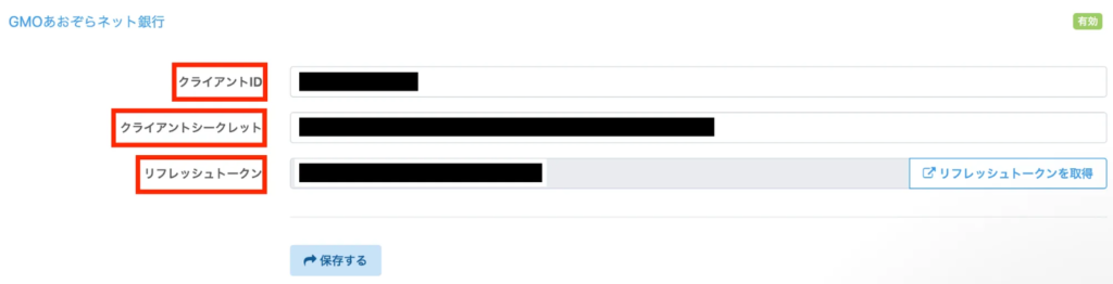 正しい情報を入力し、【保存する】ことでステータスが『無効』から『有効』になります。