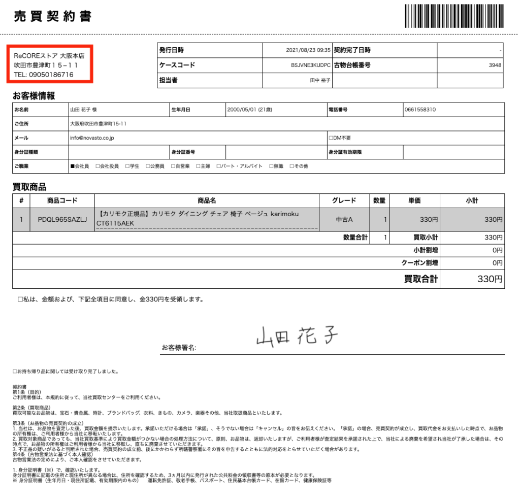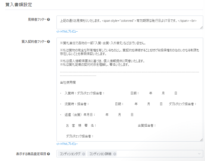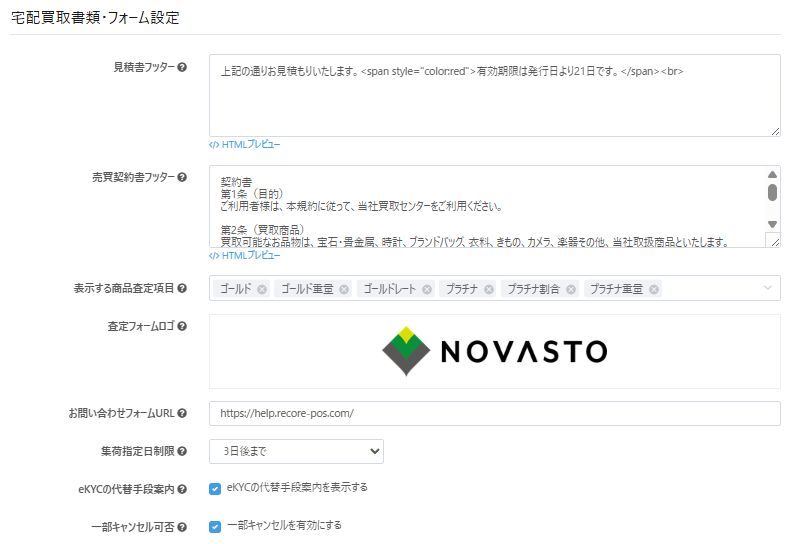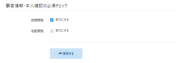 本設定では、店頭買取・宅配買取において顧客情報や本人確認の指定項目を必須入力にできます。