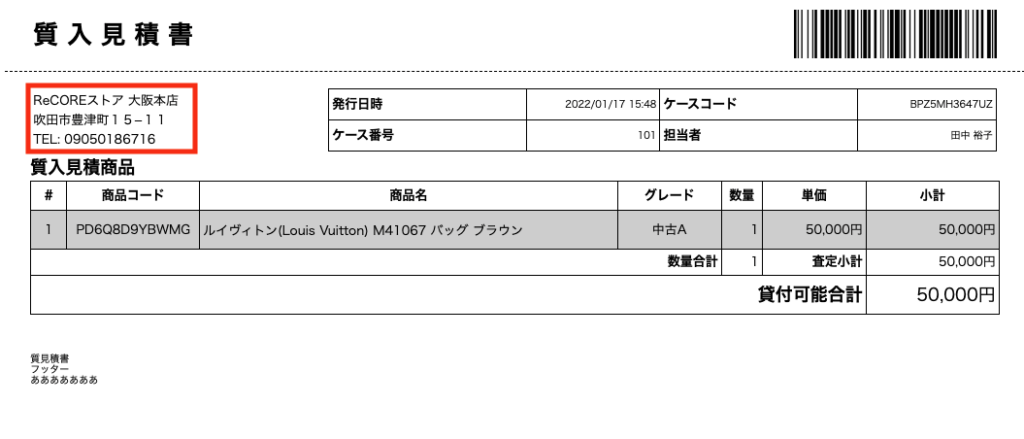 ※会社名・会社住所・会社電話番号は、「一般販売」の見積書・請求書の上部中央に表示されます。
