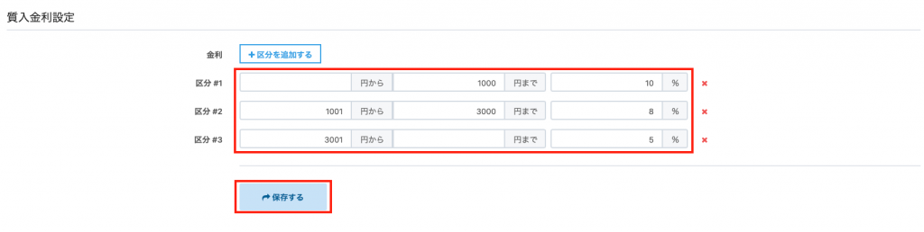 【ポイント付与率設定】をクリックし、下記項目も入力します。