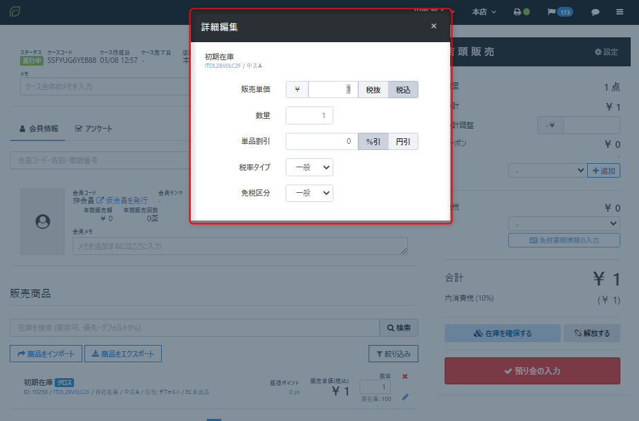 読み取り後に、販売商品の右ヨコにある鉛筆マークをクリックして金額変更を行うことが可能です。