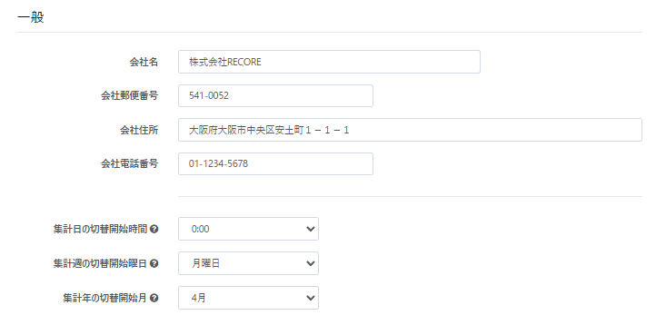 RECORE導入後、必ず【設定】の【本部設定】項目をクリックして入力を行います。