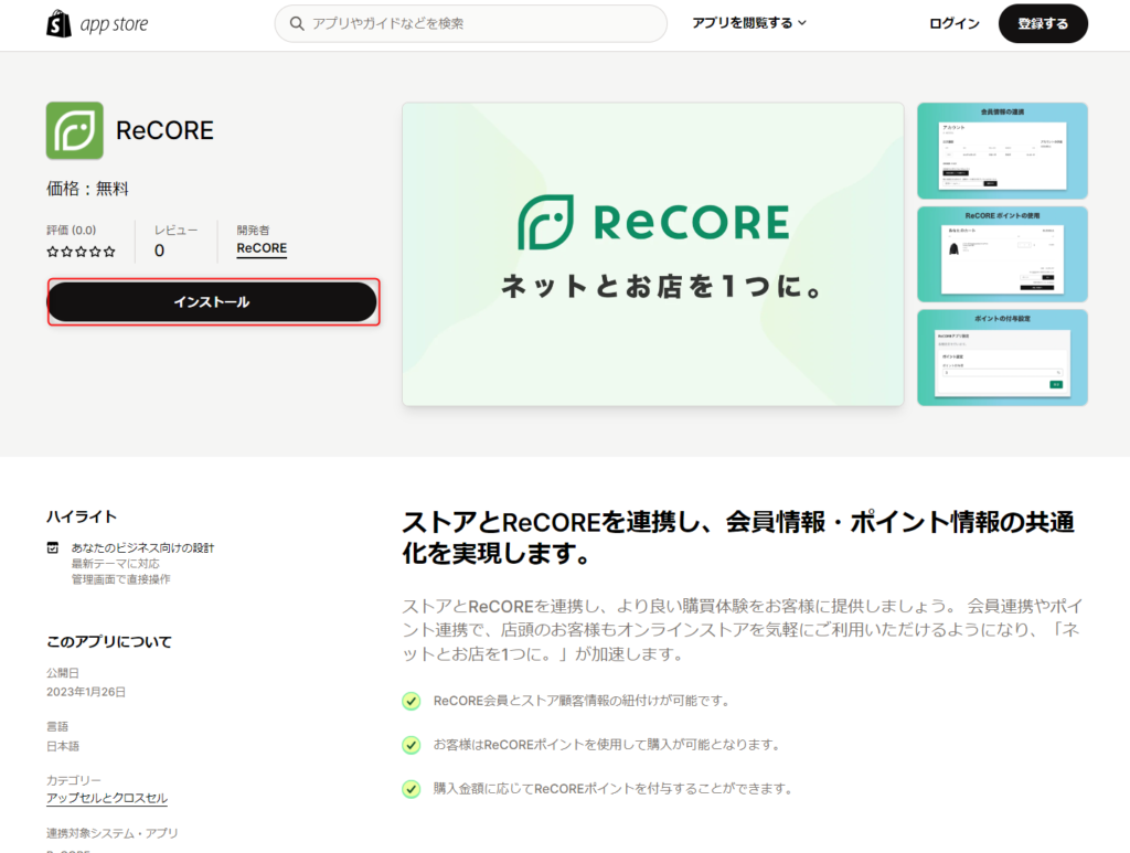 ReCOREの会員ポイントをShopify経由の購入時に使用