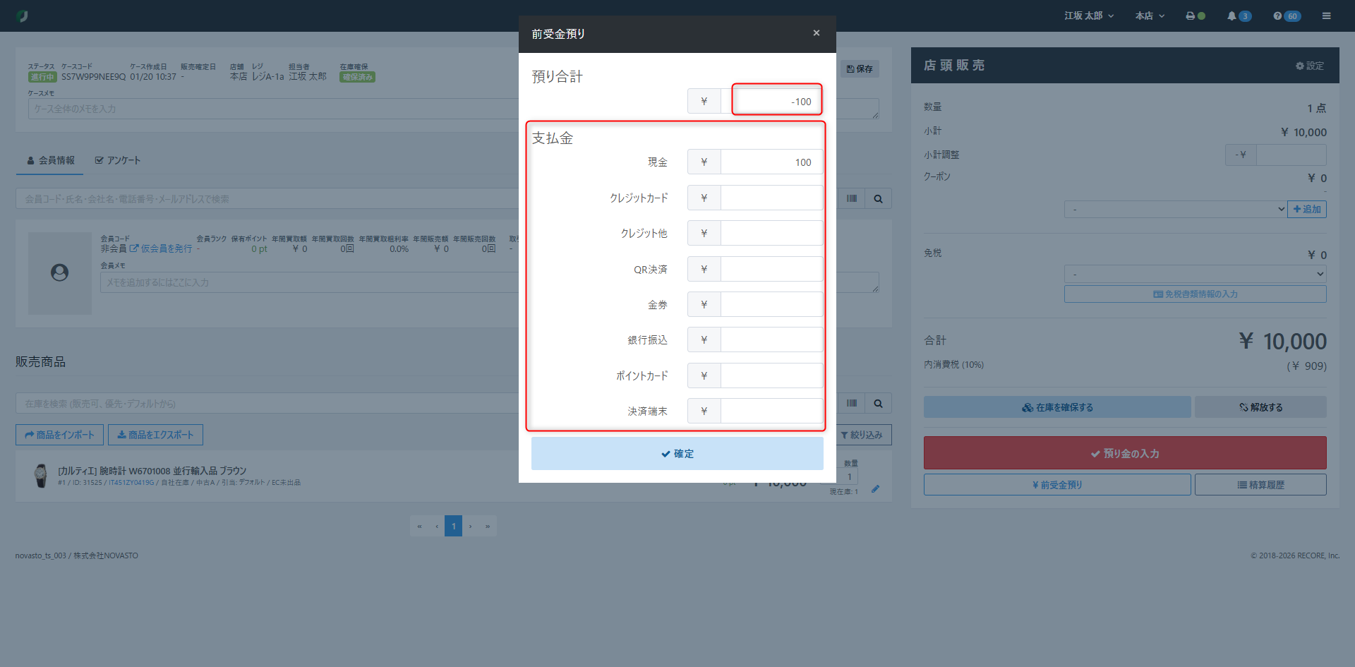 預り金を入力のうえ【確定】ボタンをクリック後、ケースを修正・削除することはできませんので、ご注意ください。