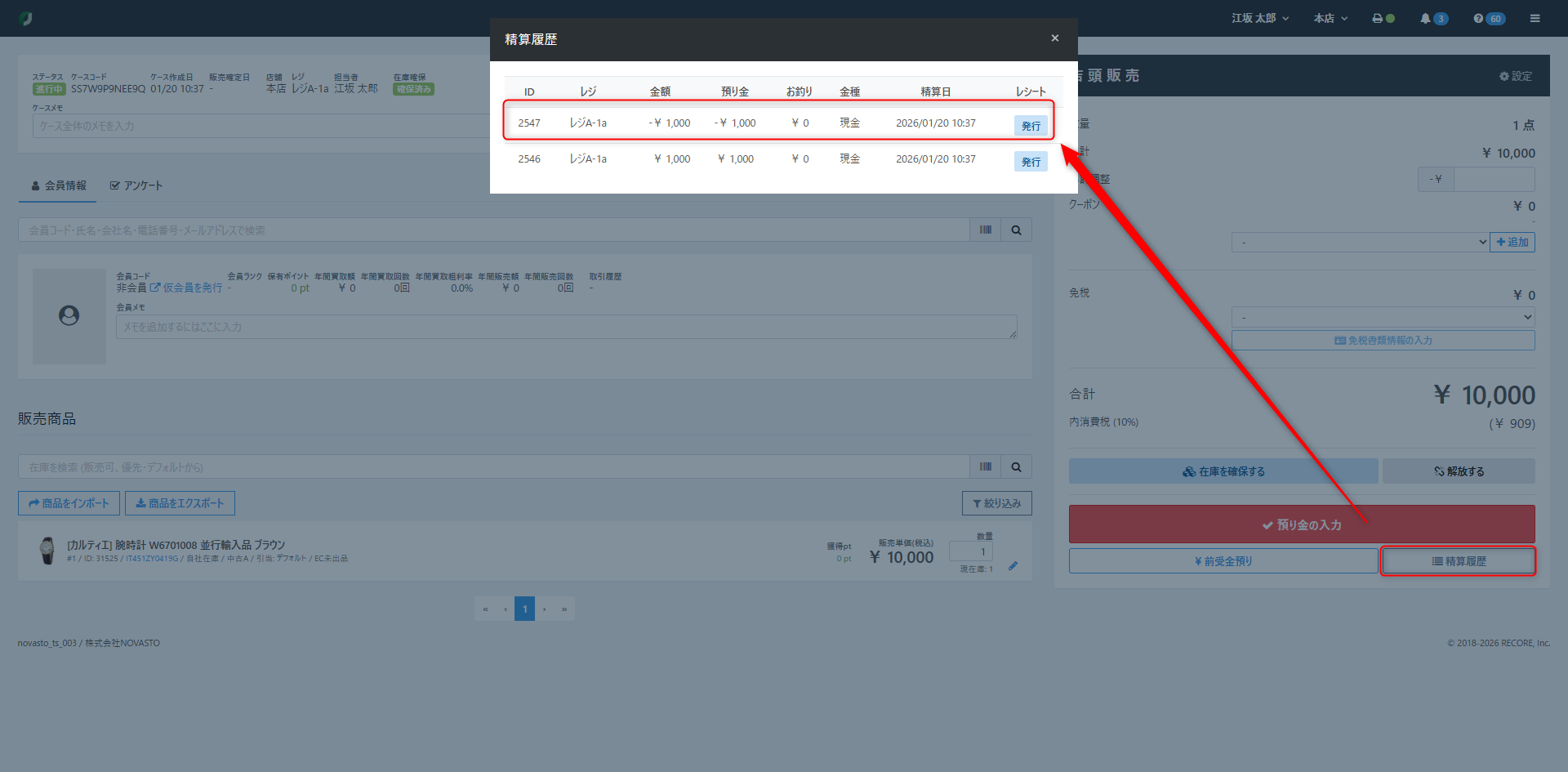 なお、「ポイント」が表示されない場合は、一度ケース内で会員を呼び出し直したうえで、あらためて支払い操作を行ってください。
