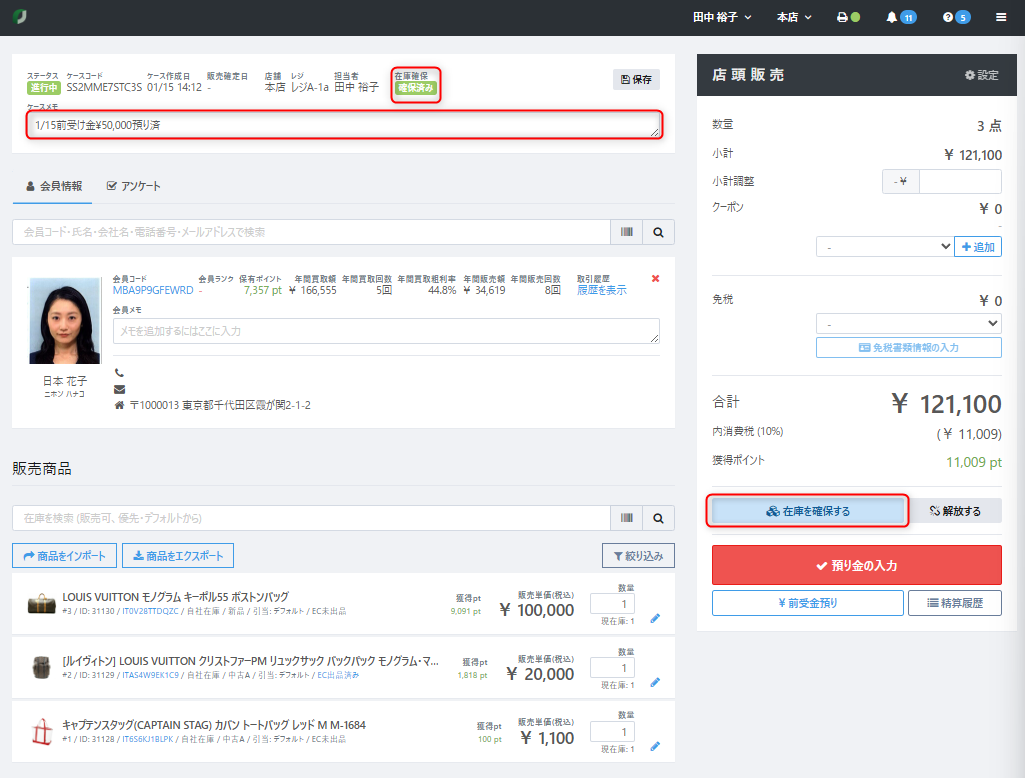 在庫の取り置きと取り置き解放について