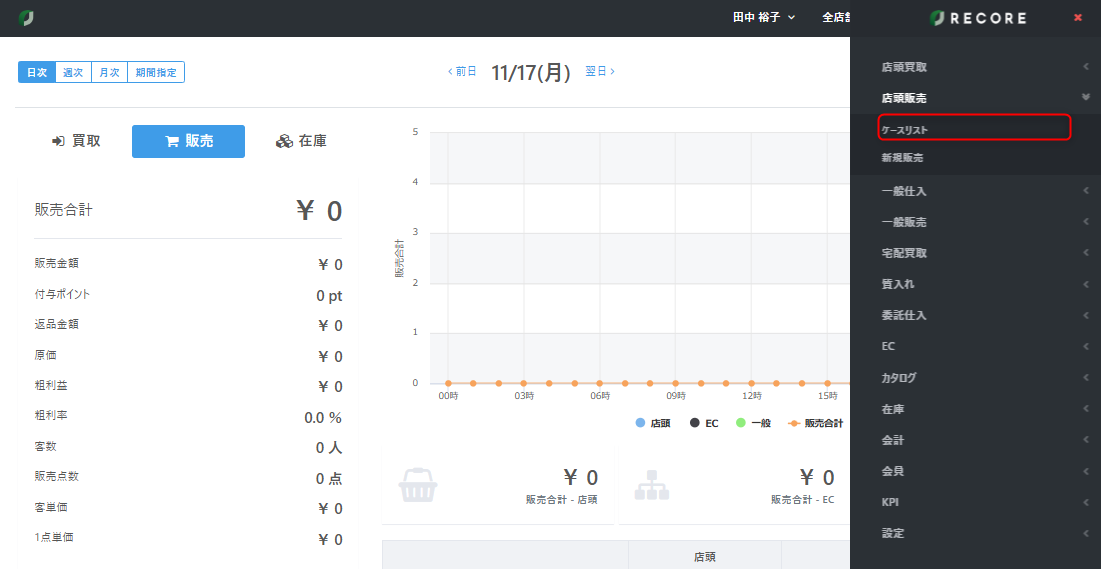 【店頭販売】メニューから【ケースリスト】を開く