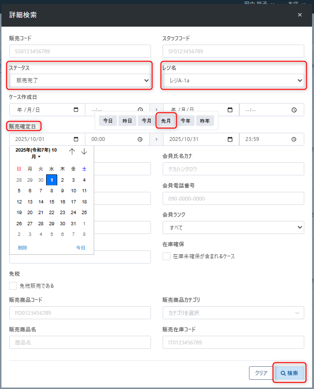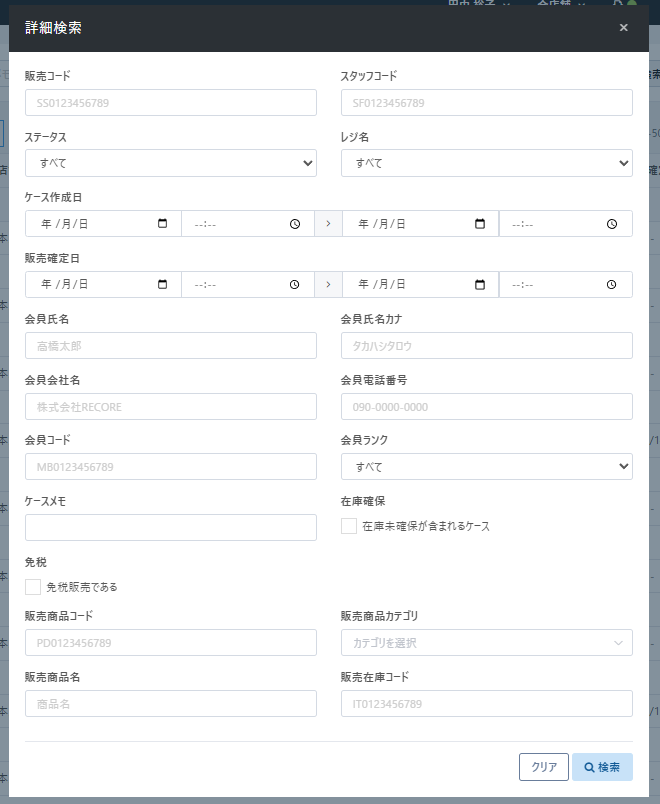 【詳細検索】より検索条件を入力し【Enter】キーをクリック(または【検索】クリック)