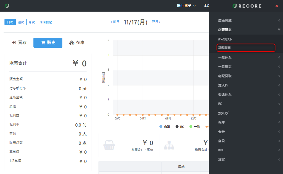 【店頭販売】メニューから【新規販売】をクリックします。