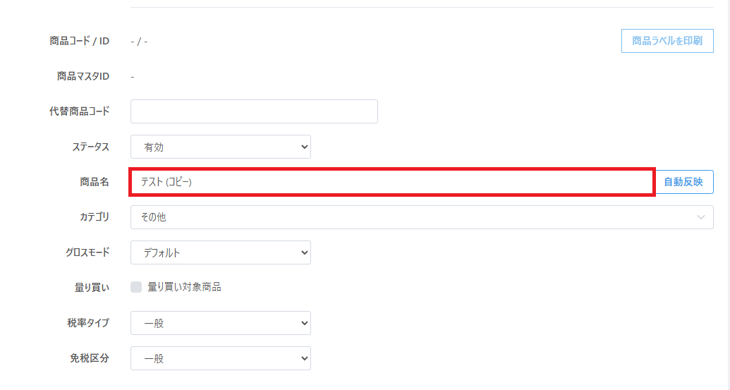 カタログの商品名の「自動反映」機能について
