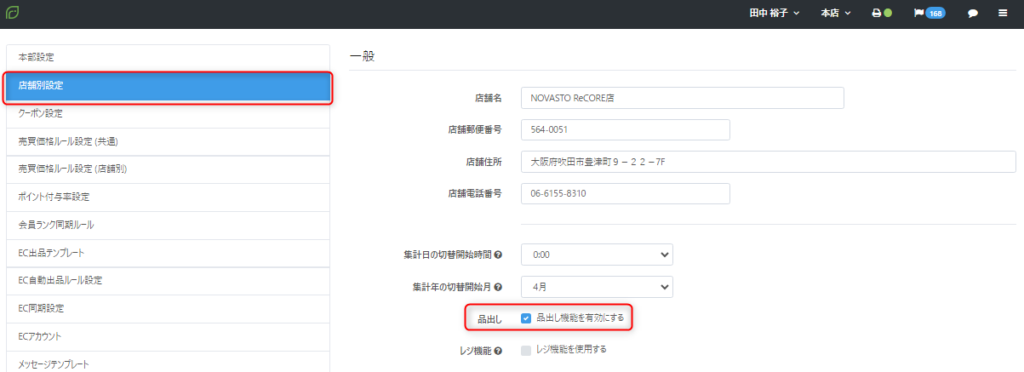 品出し機能は、【店舗別設定】でオフにすることも可能です。