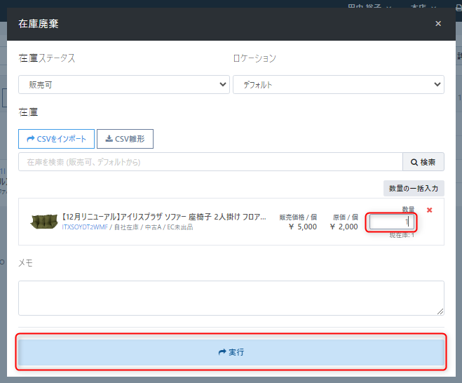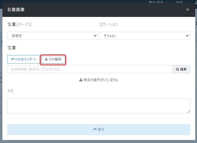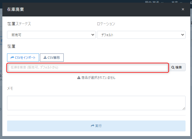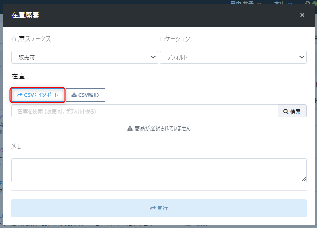 大量の在庫を廃棄したい場合、CSVデータでインポートして在庫を指定することも可能です。