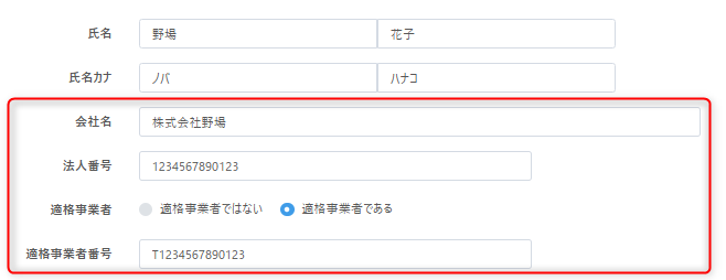 会員情報に「会社名」が登録されている場合