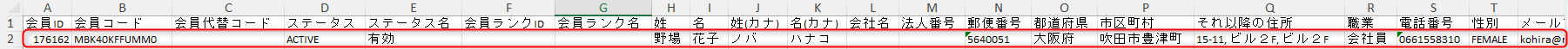 一方で、会員情報の更新をされたい場合は、前段でご案内いたしました⑥のファイルのカラムを編集する際、「会員ID」もしくは「会員コード」の入力が必須となります。