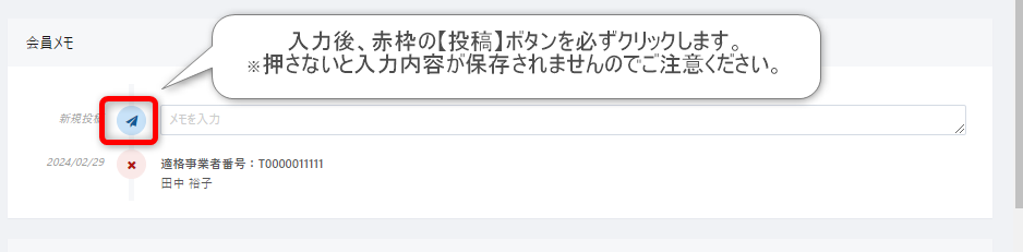 ※会員メモに入力後、入力欄の左にあります【投稿】ボタンを押さないと入力内容が保存されませんのでご注意ください。