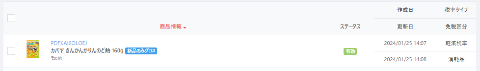 グロスモード『デフォルト』で登録したカタログは、以下のように「グロス」と表示されます。