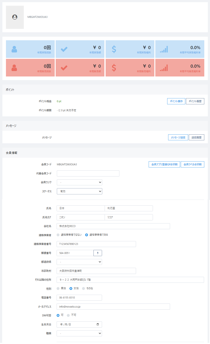 ▼再読み込み後の販売ケースの「会員情報」表示イメージ