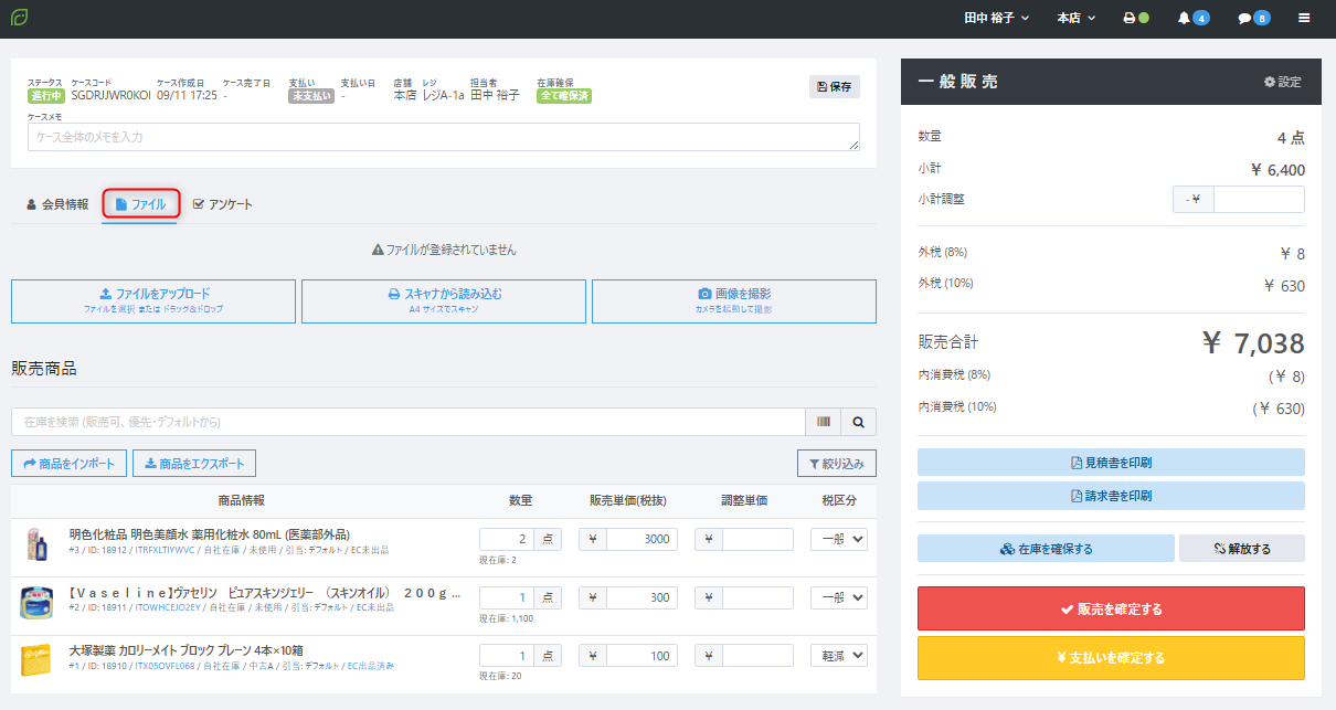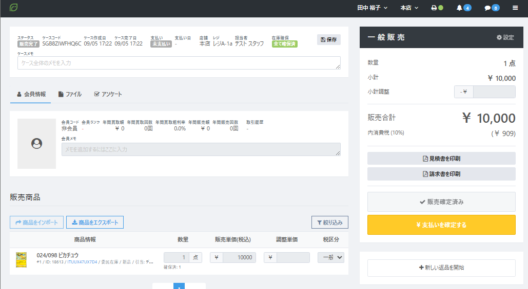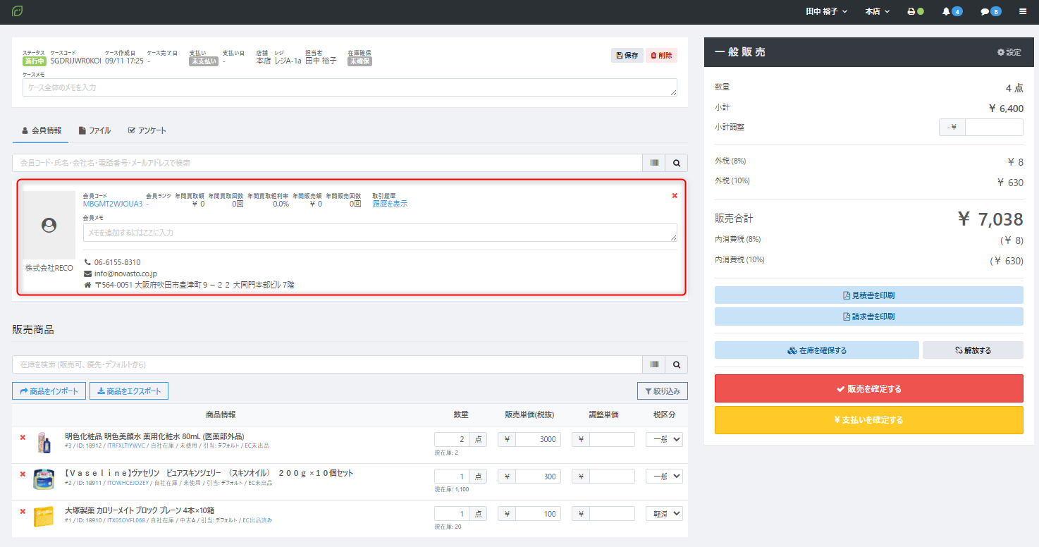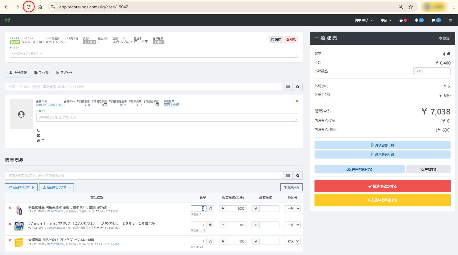 操作中の販売ケース詳細画面において、再読み込みを行うことで、会員情報をケース内に表示することも可能です。