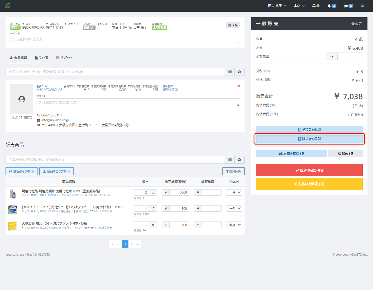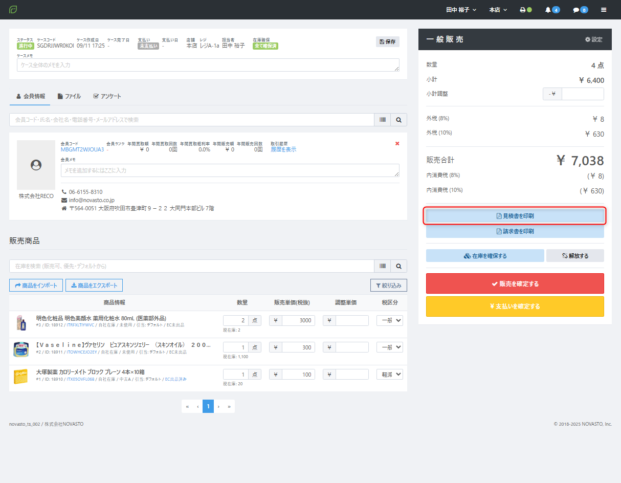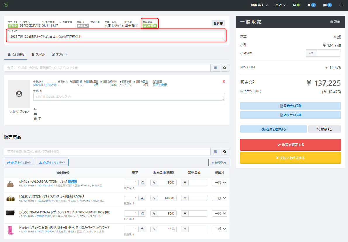 操作中の販売ケース詳細画面において、再読み込みを行うことで、会員情報をケース内に表示することも可能です。