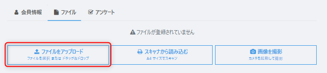 ファイル選択(ファイルの保管場所まで移動のうえ、ファイルを指定し【開く】をクリック)またはファイルをドラッグ&ドロップにより反映