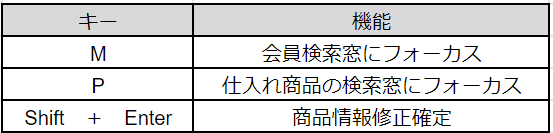 ※ Shift + Enterについては各メニューの入力段階によって適応される機能が異なります。
