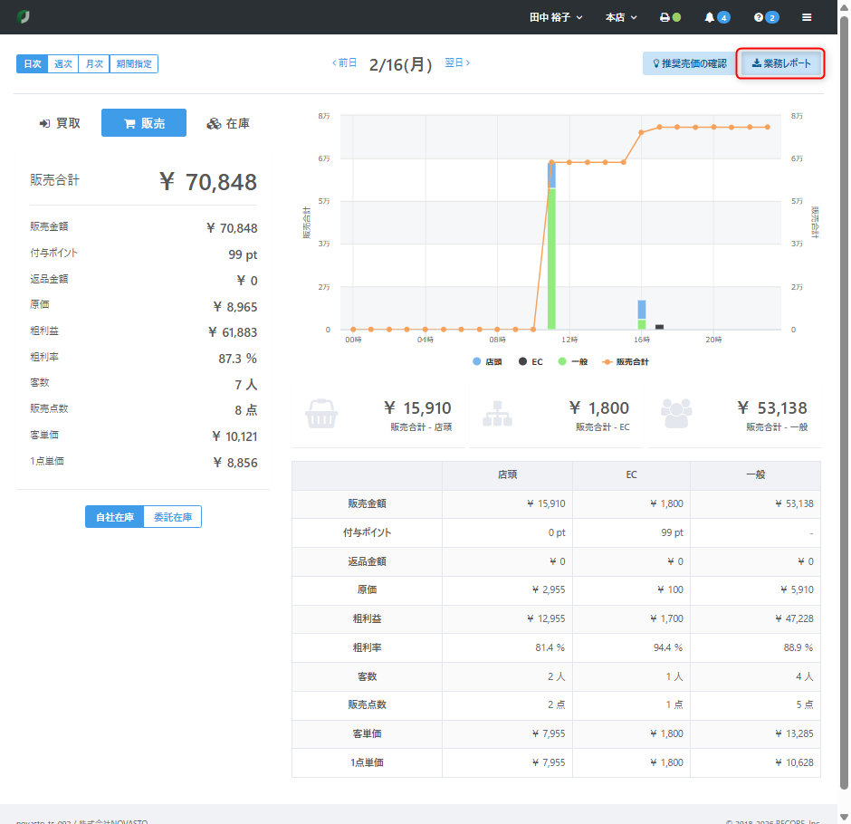 画面右上にある、【業務レポート】ボタンをクリックします。