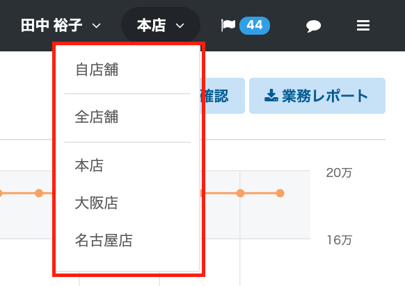 確認されたい店舗を変更したい場合は、店舗名をクリックします。